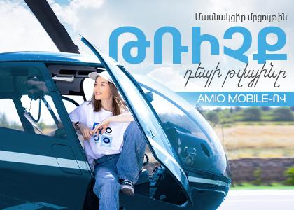 Կատարի՜ր գործարքներ AMIO Mobile-ով, մասնակցի՜ր մրցույթին և ստացի՜ր Armenian Helicopters-ի հետ ուղղաթիռով թռչելու հնարավորություն դեպի Ազատի ջրամբար և Գառնու տաճար: