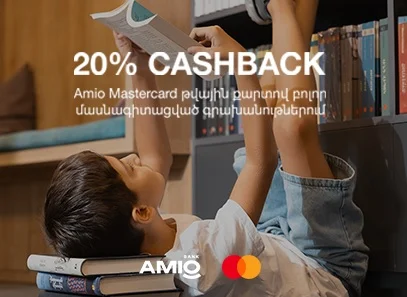 Կատարե´ք գնումներ AMIO Mastercard-ով ՀՀ բոլոր գրախանութներից, ներառյալ ամենախոշոր և հեղինակավոր գրախանութները` Զանգակ, Ֆենիքս, ՆՈՐ գրախանութ, Bookinist, Karandash, Epigraph, և ստացեք cashback-եր: