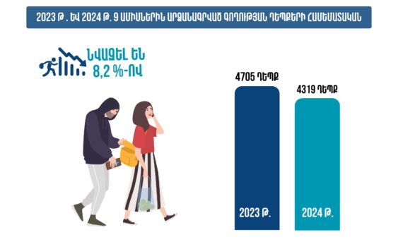 Ընդհանուր առմամբ գողության դեպքերը նվազել են 8,2 տոկոսով: