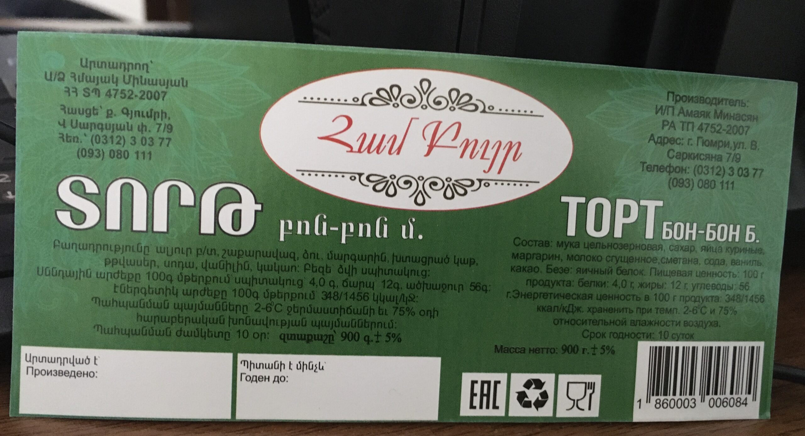 ՀՀ սննդամթերքի անվտանգության տեսչական մարմնի Շիրակի մարզային կենտրոնի տեսուչներն անհատ ձեռնարկատեր Հմայակ Մինասյանին պատկանող հրուշակեղենի արտադրամասում անցկացվող ստուգման ընթացքում պարզել են, որ այն գործում է իրավական ակտերով սահմանված սանիտարահիգիենիկ նորմերի խախտումներով (Շիրակի մարզ, ք. Գյումրի)։