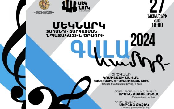 նոյեմբերի 27-ին՝ ժամը 18:00-ին, Կոմիտասի անվան կամերային երաժշտության տան դահլիճում կանցկացնի «Մեկնարկ» տաղանդի զարգացման նպատակային ծրագրի գալա համերգը: