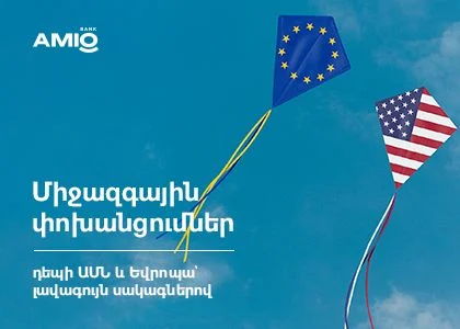 Դեպի ԱՄՆ և Եվրոպա փոխանցումների համար Ամիօ բանկում մեկնարկած ակցիայի շրջանակում գործում են բացառիկ սակագներ.