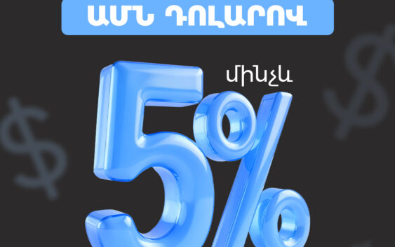 Բանկի «Շահավետ» ավանդատեսակի շրջանակում ԱՄՆ դոլարով առցանց ավանդն արդեն հնարավոր է ձևակերպել մինչև 5% տարեկան տոկոսային եկամտաբերությամբ: