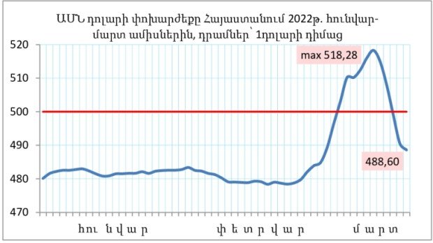 Հայաստանում ԱՄՆ դոլարի պաշտոնական փոխարժեքը կրկին հատեց 500 դրամի հոգեբանական սահմանը (տե՛ս գրաֆիկը)։ Սակայն, ի տարբերություն Ռուսաստանի, մեր երկրի համար սա բոլորովին էլ սենսացիա չէ։ Նախադեպեր եղել են ինչպես անցյալ տարի, այնպես էլ ավելի վաղ։ Հայաստանում արտարժույթի շուկան, ի տարբերություն Ռուսաստանի, առանձնանում էր որոշակի կայունությամբ։ Վերջին տարիներին ԱՄՆ դոլարի փոխարժեքի առանձնակի տատանումներ չենք նկատում, մինչդեռ Ռուսաստանում համաշխարհային այս արժույթը մի քանի անգամ ամրապնդվել է։