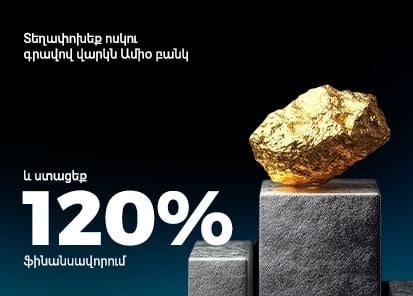 Բանկն առաջարկում է ոսկու գնահատված արժեքի մինչև 120% վարկավորում՝ արագ, պարզ և շահավետ