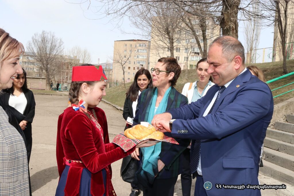 Դեսպանը նաև հետաքրքրվել է մարզի ունեցած պոտենցիալից և հայտնել, որ պատրաստ է աջակցել բոլոր այն նախաձեռնություններին, որոնք էլ ավելի կամրապնդեն հայ-ֆրանսիական հարաբերությունները և տարբեր ուղղություններով նոր համագործակցությունների հիմք կդառնան: Պարոն Սահակյանը նկատեց նաև ՝մենք տիկին դեսպանի հետ նաև այցելել ենք Հրազդանի Վիլյամ Սարոյանի անվան թիվ 11 հիմնական դպրոց, որտեղ ֆրանսերեն լեզվի խորացված ուսուցում է իրականացվում:Դպրոցում ներկա ենք գտնվել ֆրանսերենի յուրօրինակ միջոցառմանը. աշակերտներն առիթ են ունեցել շփվելու դեսպանի հետ նաև ֆրանսերենով: