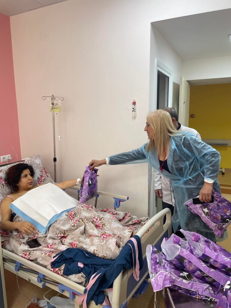 Կենտրոնի բուժական գծով փոխտնօրեն Աշոտ Գևորգյանը և ասոցիացիայի նախագահը եղան հիվանդասենյակներում, շնորհավորեցին մայրիկներին տոնի առթիվ և հանձնեցին նվերները։ Պարոն Գևորգյանը տնօրինության անունից շնորհակալություն հայտնեց մատուցած գեղեցիկ անակնկալի համար։