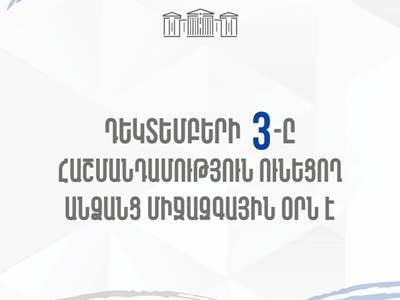 1992 թ. ՄԱԿ-ը դեկտեմբերի 3-ը հռչակեց Հաշմանդամություն ունեցողների միջազգային օր: 2006 թ. դեկտեմբերին մեր երկիրը միացավ «Հաշմանդամություն ունեցող անձանց իրավունքների մասին» կոնվենցիային: Այս մասին հայտարարություն է տարածել Ազգային ժողովը: