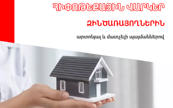 ՀԱՅԲԻԶՆԵՍԲԱՆԿԸ միացել է զինծառայողներին բնակարանի, բնակելի տան ձեռքբերման կամ կառուցապատման նպատակով հիփոթեքային վարկերի տրամադրման պետական աջակցության ծրագրին ինչպես կառուցապատողից, այնպես էլ երկրորդային շուկայից: